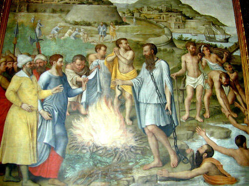 二十八6 凡是讲到一个人被毒蛇或蜥蝪咬而不死,这类故事都会说,这样的人是圣人(如:敬虔的犹太圣人哈尼拿.班.多撒);希腊罗马异教常认为这类圣人是神,或半神半人。